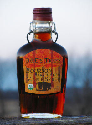 If you didn't make your own syrup, there are lots of local options at farmers market and almost every grocery store. If you want to go fancy, try B&E's Trees bourbon barrel-aged maple syrup.